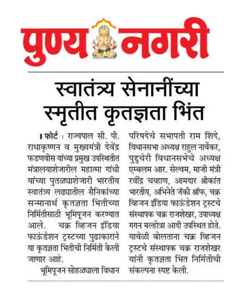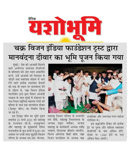 Proud to be part of the Bhoomi Pujan for the Tribute Wall by Chakra Vision India Foundation Trust under MISSION AZADI—immortalizing 1,040 freedom fighters at each of the 100 planned walls across India.